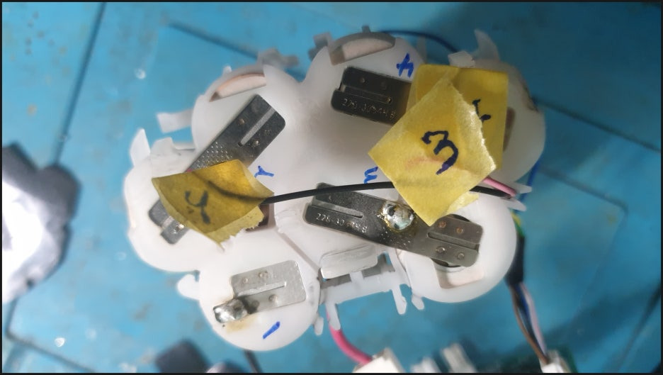 배터리 분리 전에 적어둔 번호 순서대로 케이블 납땜하고, 각종 커넥터들을 연결시켜 주면 배터리 리필 작업은 완료됩니다.