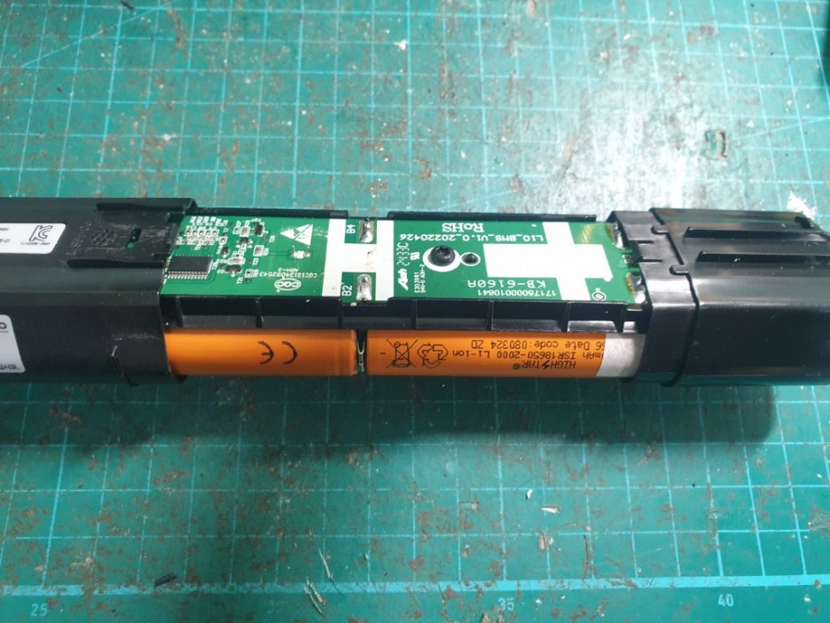 겉으로 보기에는 멀쩡해 보이지만, 내부의 배터리 셀이 수명을 다해 청소기를 돌린 지 몇 분 만에 전원이 꺼지는 증상을 보이고 있었습니다.